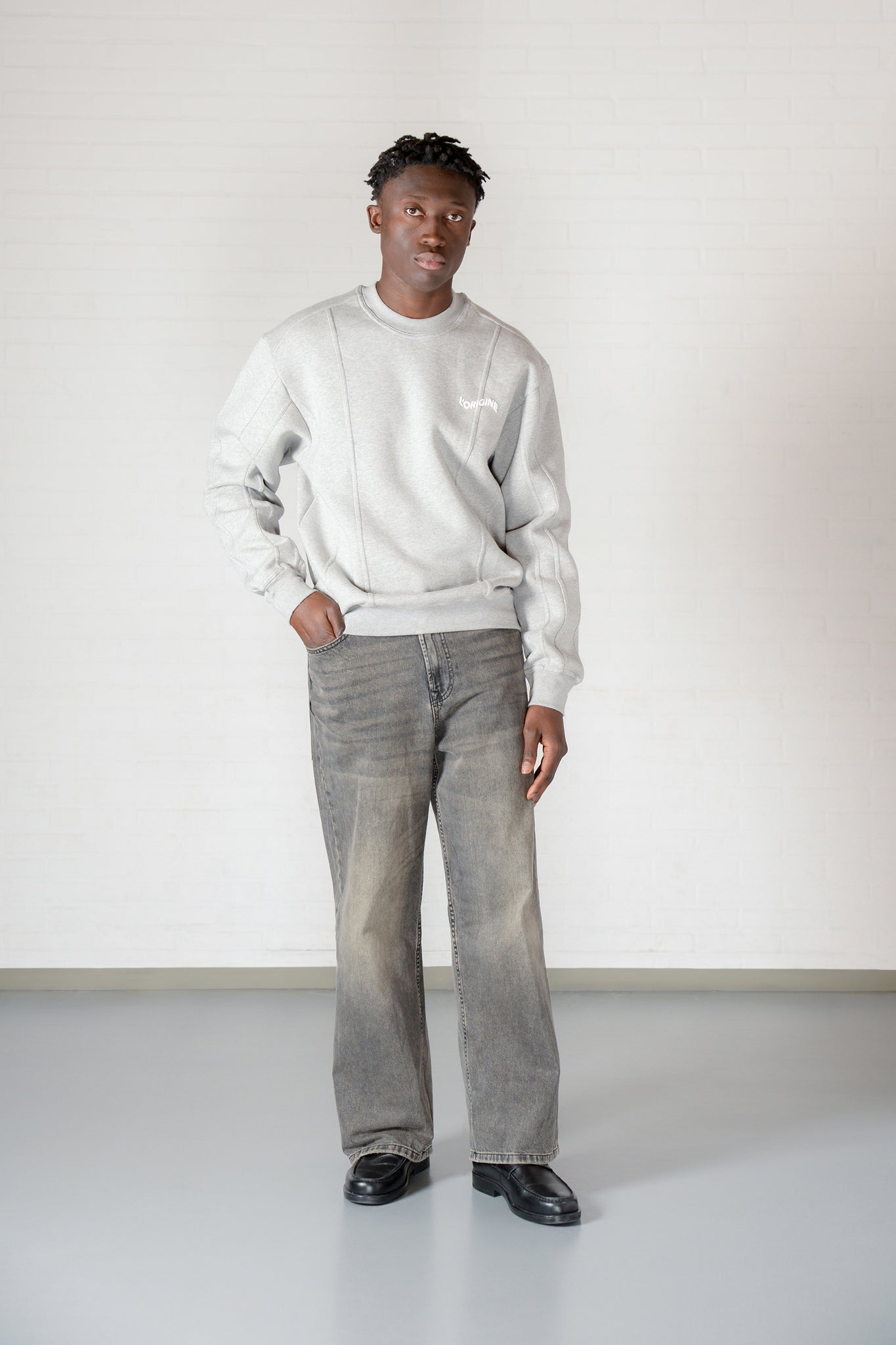 L'ORIGINE Iconic Drop 2.0 Grey is shaped for a comfortable fit and completed with seams on the body and sleeves and a flock logo on the chest.
