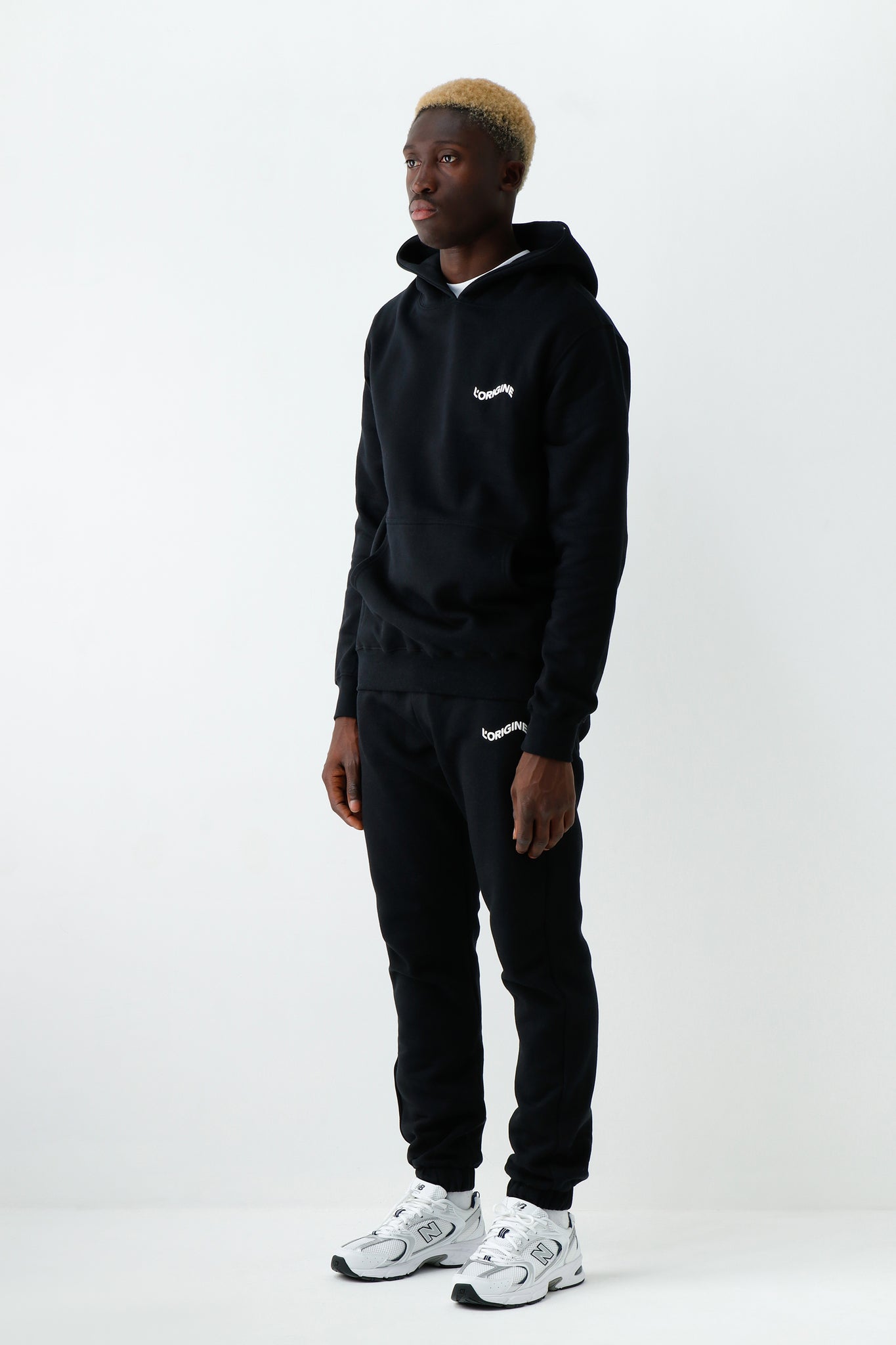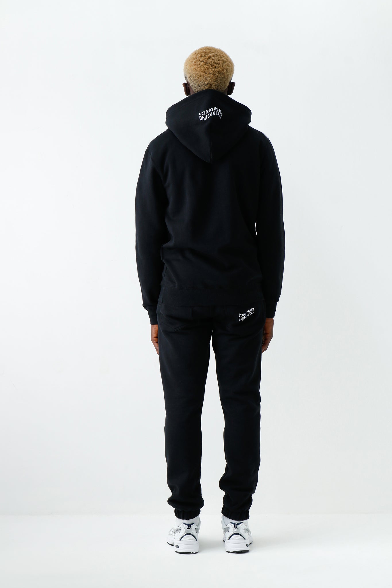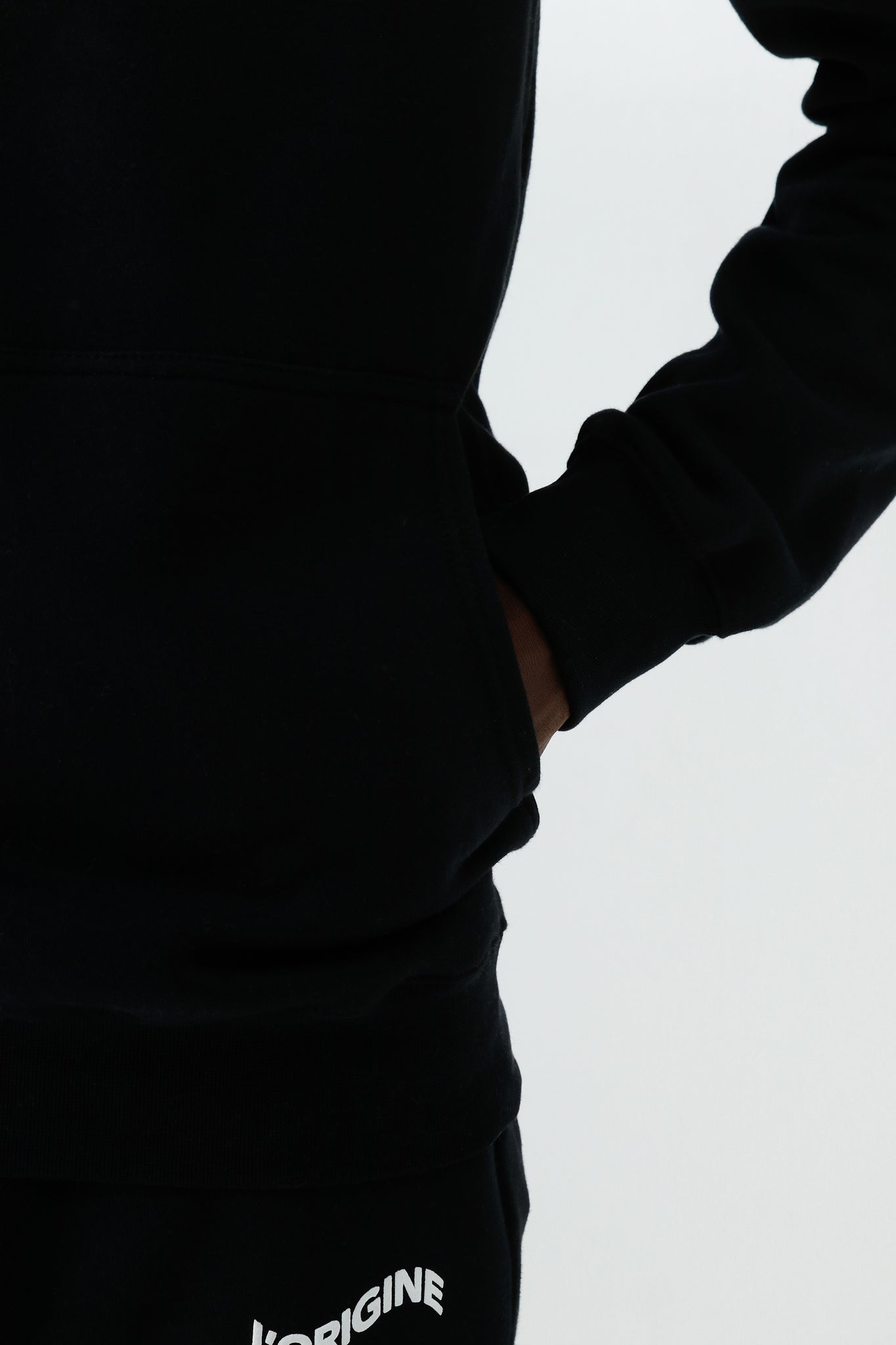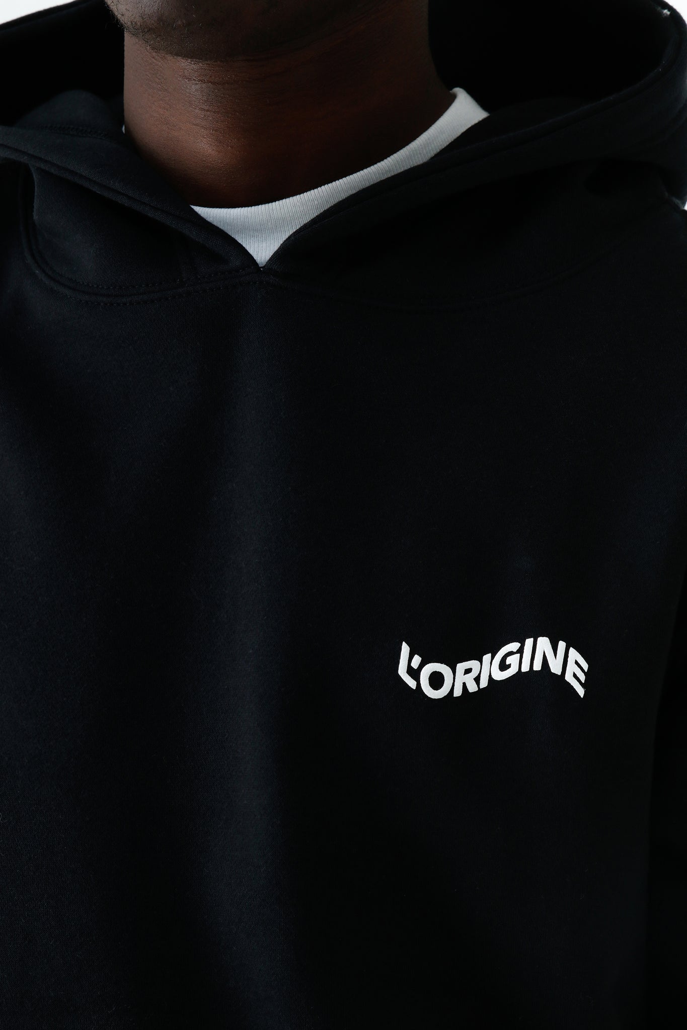 L'ORIGINE Iconic hoody black is shaped for a comfortable fit and completed with the flock print logo on the chest.