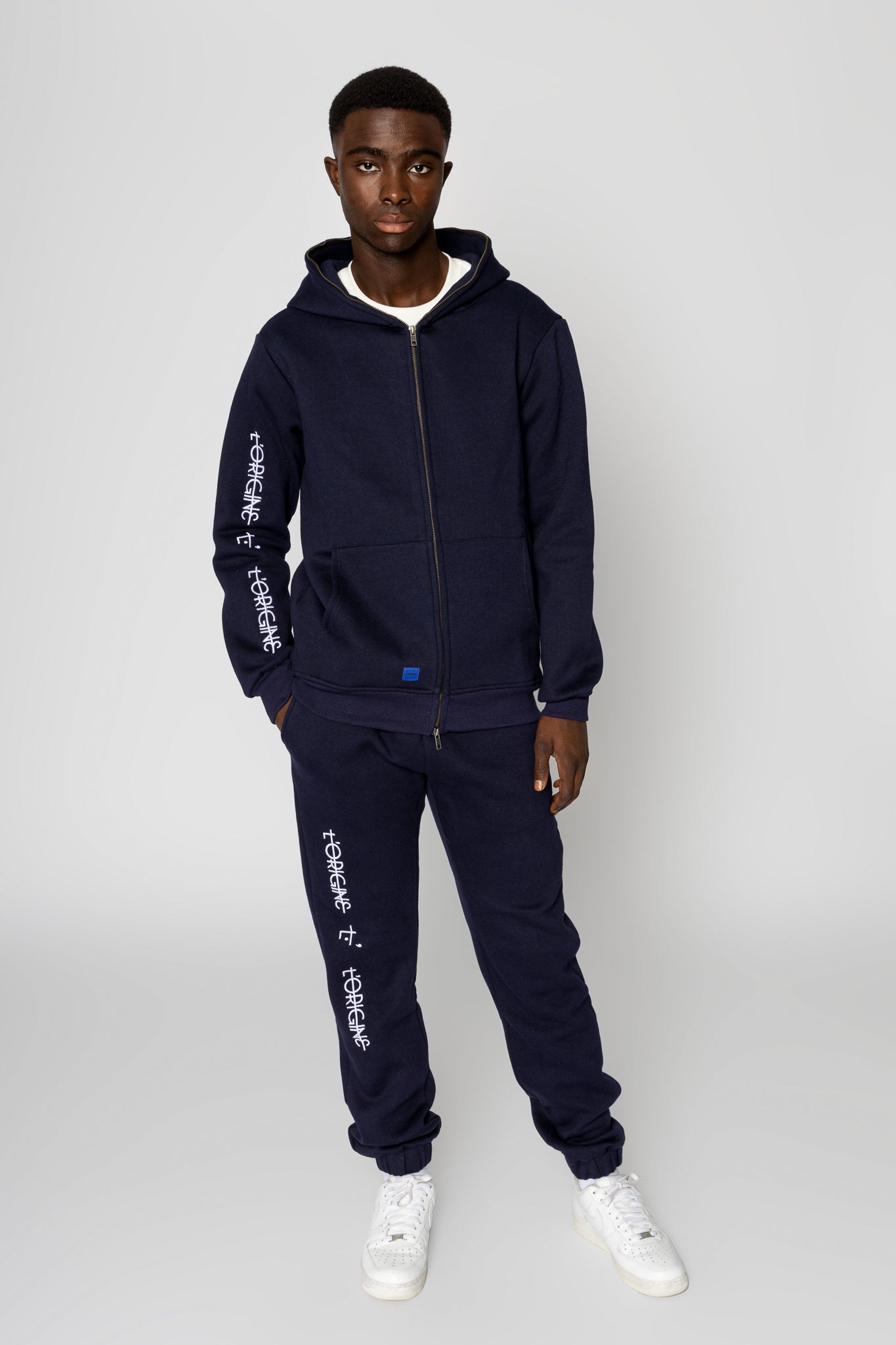 L'ORIGINE Iconic and two way shark zip hoody Navy Blue is shaped for a comfortable fit and completed with the 3D embroidery logo's on the sleeve.